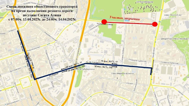 📌Перекрытие дорог в Уфе13 апреля с 07:00 до 24:00 будет ограничено движение 📍от ул. Сагита Агиша, 2Б до ул. Степана