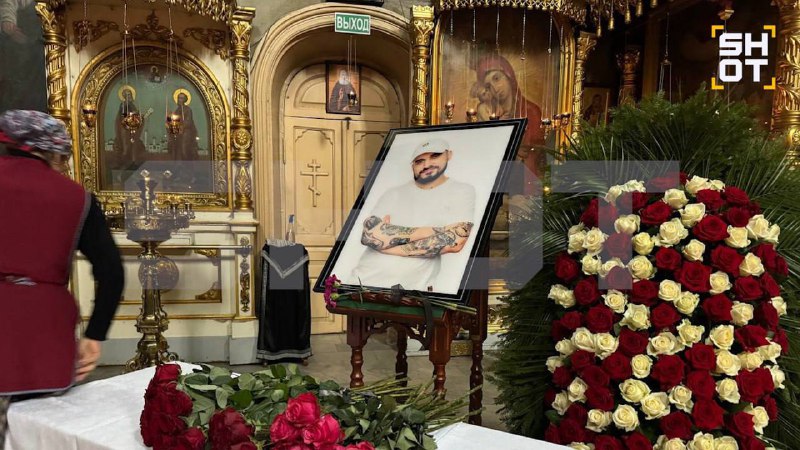 Прощание с Пашей Техником началось в московском Храме Петра и Павла в Лефортово. У гроба с телом артиста стоит его