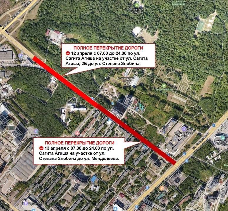 ⛔️⛔️⛔️⛔️⛔️дорог: улица Сагита Агиша📍 12 апреля с 07:00 до 24:00 – от ул. Сагита Агиша, 2Б до ул. Степана Злобина📍