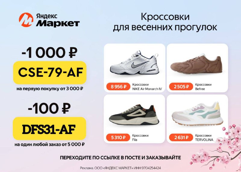 СУПЕРПРОМОКОДЫ на Яндекс Маркет— Скидка 1000₽ от на первый заказ от 3000₽ по промокоду CSE-79-AF*Или воспользуйтесь промокодом DFS31-AF — скидка