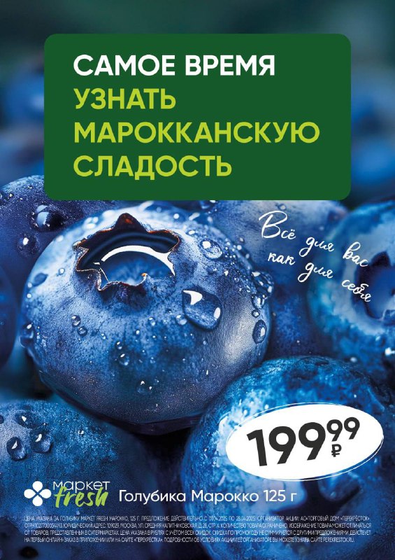 🌱 Весна здесь, в Перекрёстке!❤️ У нас для Вас отличное предложение! Такая сладкая голубика 125 г за 199,99 рублей в