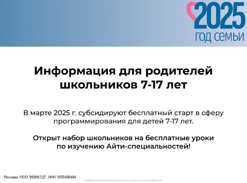 С 1 по 31 марта (включительно) любой школьник РФ может получить сертификат на бесплатное пятимесячное Айти-обучение.Школа программирования ИзиКод в игровой