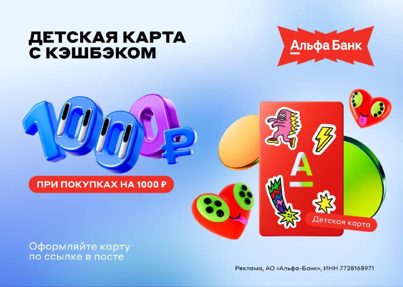 Детская карта, как у взрослого!Карта Альфа-Банка для детей с 6 до 14 лет! Бесплатная навсегда и без условий.— Приложение с
