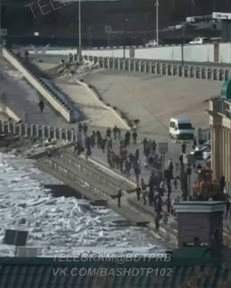 Из-за ледового затора начали обкладывать мешками с песком колоннаду на набережной реки Белойufa2. Подписаться | Прислать новость