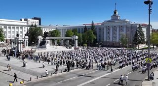 Глава о Вальсе ПобедыРадий Хабиров:«500 пар школьников и студентов колледжей Башкортостана закружились сегодня в «Вальсе Победы» на Советской площади. Можно