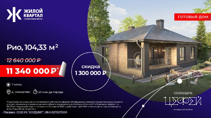 Станьте владельцем готового дома в посёлке бизнес-класса «Созвездие Цефей» с уникальной скидкой до 1 300 000 рублей и выгодными условиями