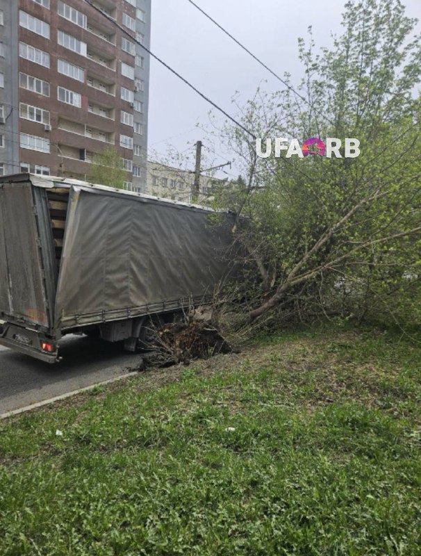 В Уфе дерево упало на ехавшую фуру⠀Инцидент произошел сегодня на улице Мингажева. Как сообщили UTV очевидцы, американский клен упал из-за