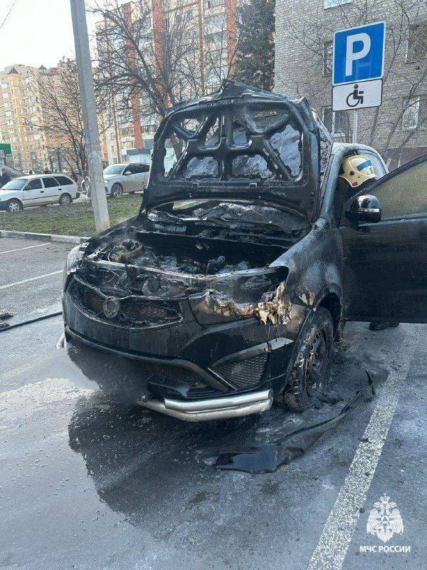 МЧС по РБ: В Уфе во дворе дома на проспекте Октября 65/2 огнеборцы МЧС России потушили горящий легковой автомобиль Sangyon
