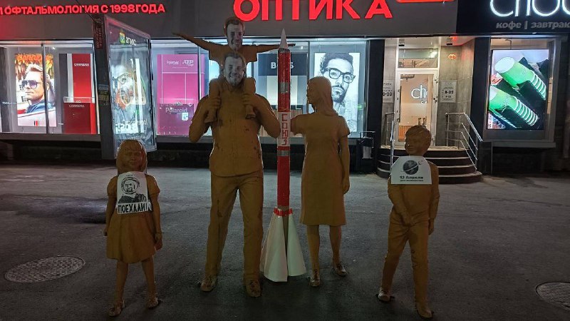 В Уфе кто-то очень остроумный прилепил маски с портретом Гагарина на лица памятника семье около фирмы Мир. И ракету поставилиПодписаться