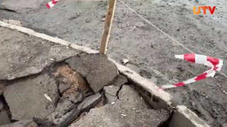 Ул. Бехтерева. Очередной обвал. Под треснувшим асфальтом — пустота. Участок дороги огражден.Источник: UTVПодписаться на ufa2.ru ✔️