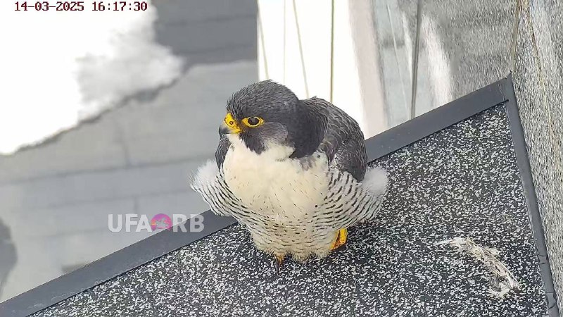 Сапсаны Уралсиба вернулись в Уфу. Камера, установленная над гнездовой площадкой, зафиксировала появление сапсанов 14 марта 2024 в 16.18Соколы гнездятся на