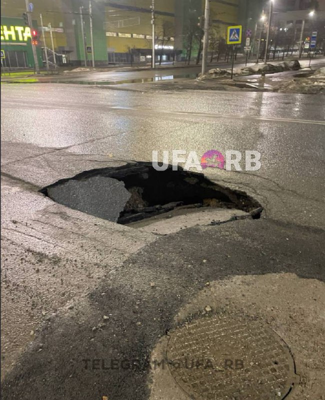 На Пархоменко асфальт провалился. Что иронично, аккурат напротив Управления по ремонту и строительству дорог Подписаться на ufa2.ru ✔️
