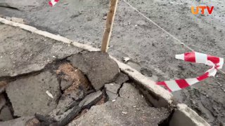 Под треснувшем асфальтом образовалась пустота. Участок дороги огражден.