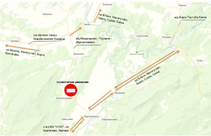 📍 по временной объездной дороге рядом с мостом через р. Сикияз рядом с д. Баш-Ильчикеево в Салаватском районе,